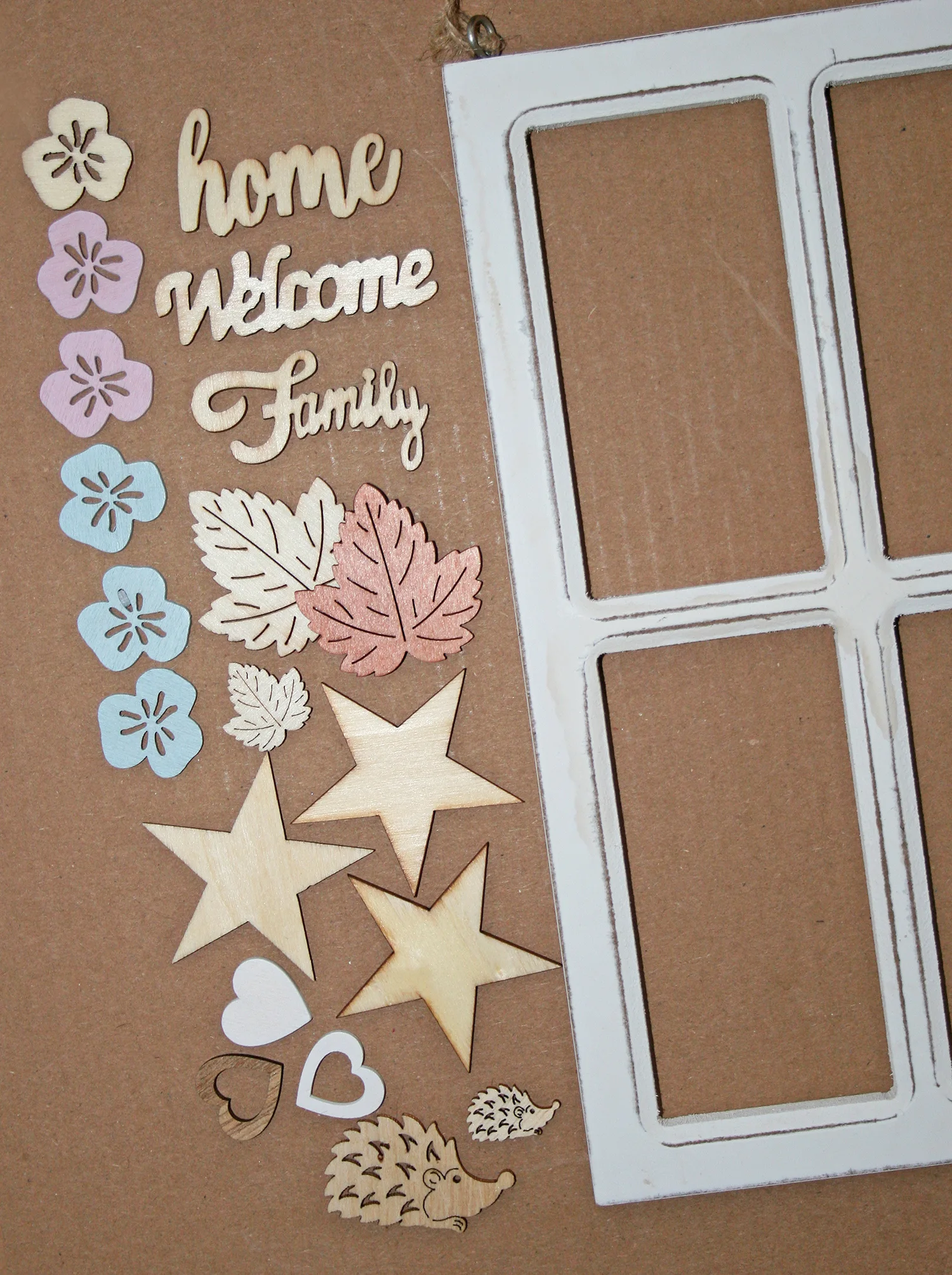 bestehend aus einem Bilderrahmen/Fensterrahmen zum Aufhängen und 20 bis 25 Dekofiguren (je nach Sortierung)