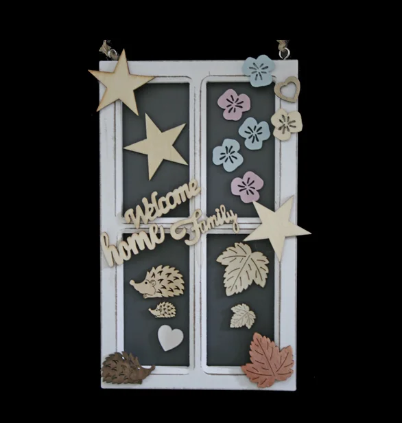 Einfach den Deko-Fensterrahmen mit einem beliebigen Motiv hinterkleben - bunt oder einfarbig, auch Foto oder Naturmaterial möglich - und anschließend nach Belieben dekorieren.