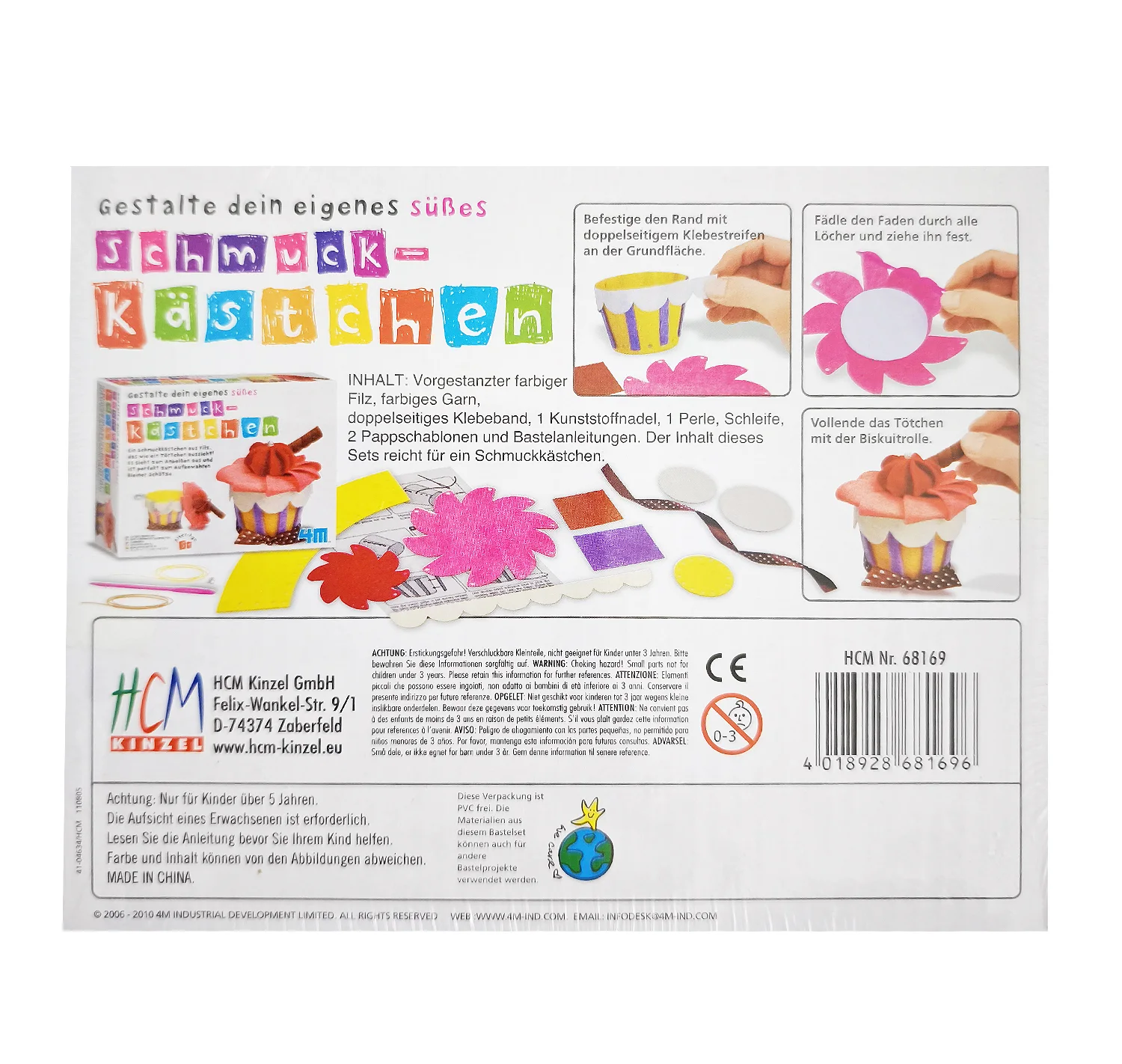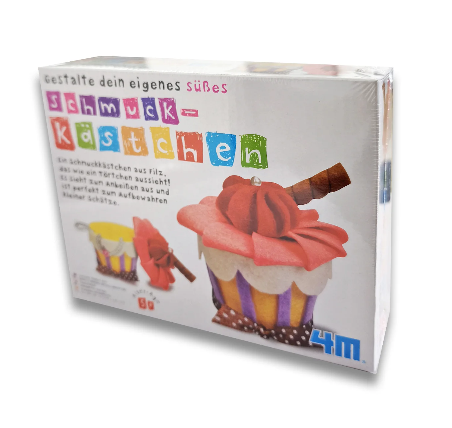 Basteln mit FilzSchmuckkästchen in Törtchen-Formzum Anbeißen süß und zur Aufbewahrung kleiner Mädchenschätzeab 5 Jahrefördert Kreativität, Ausdauer und handwerkliches GeschickVersand in einer Recycling-Verpackunglanglebiges Material
