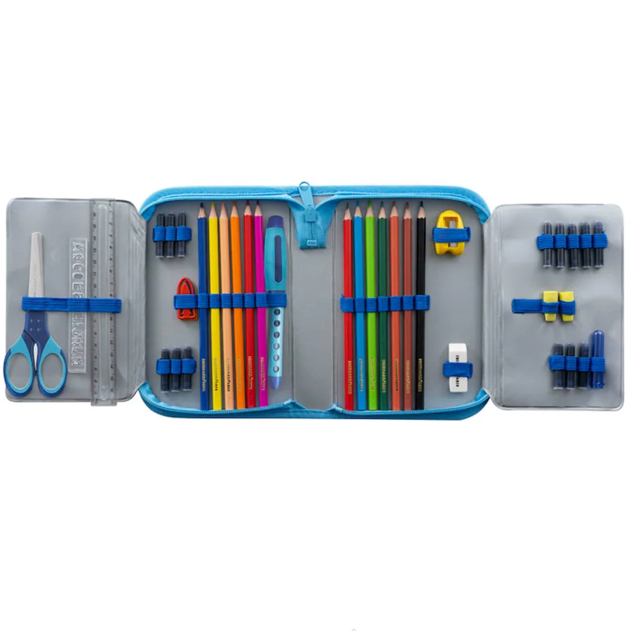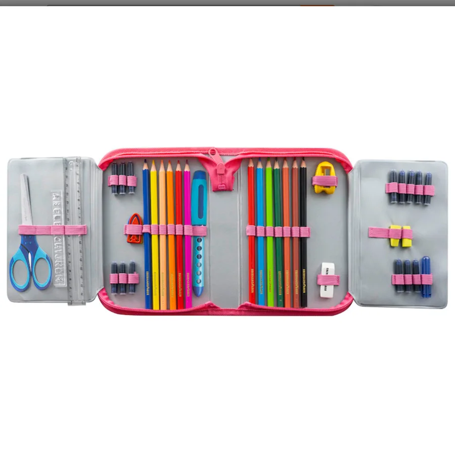Dank der Aufteilung in mehrere Fächer und den robusten Gummizügen können die Schreibutensilien schnell und übersichtlich befestigt werden.