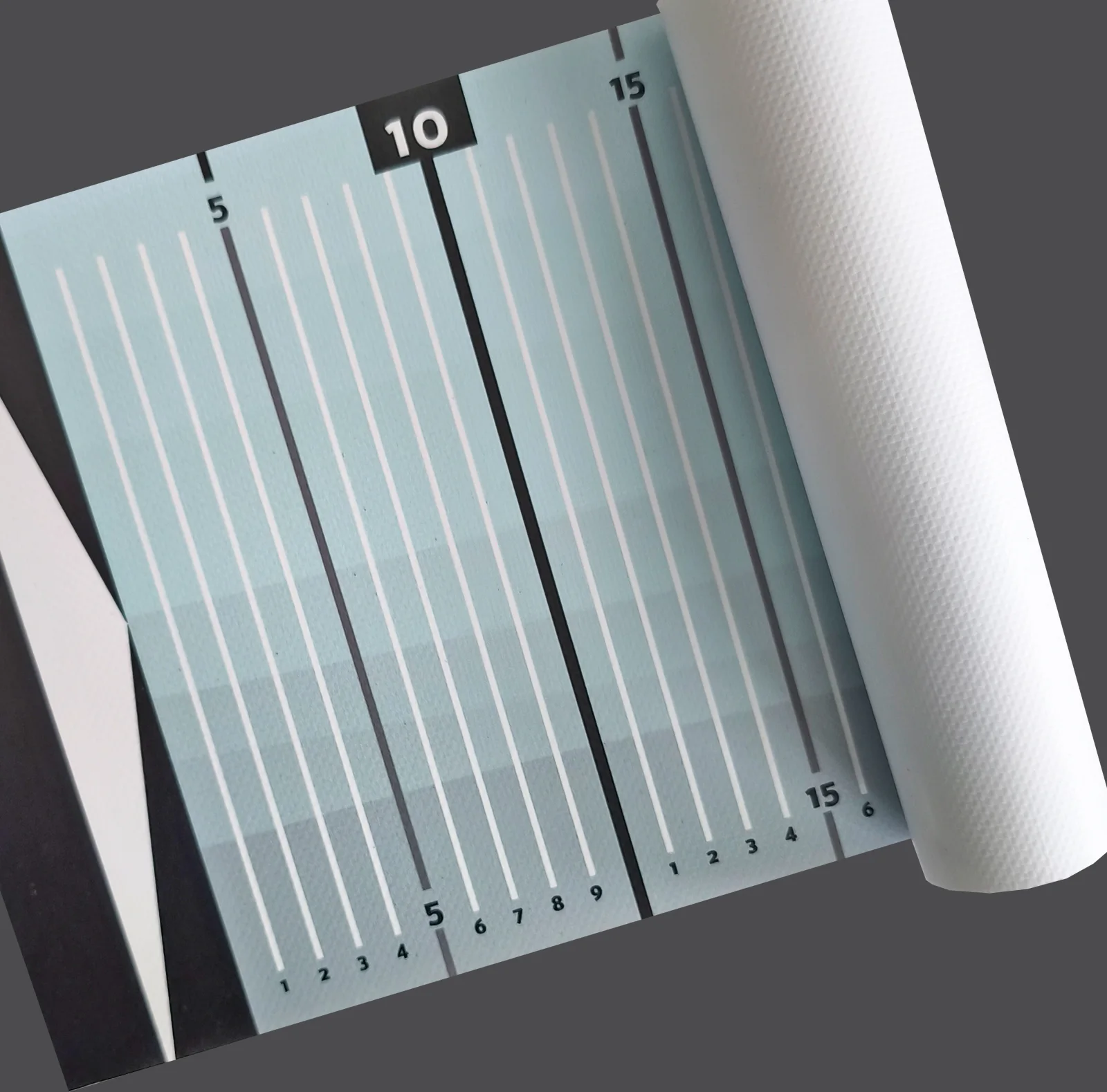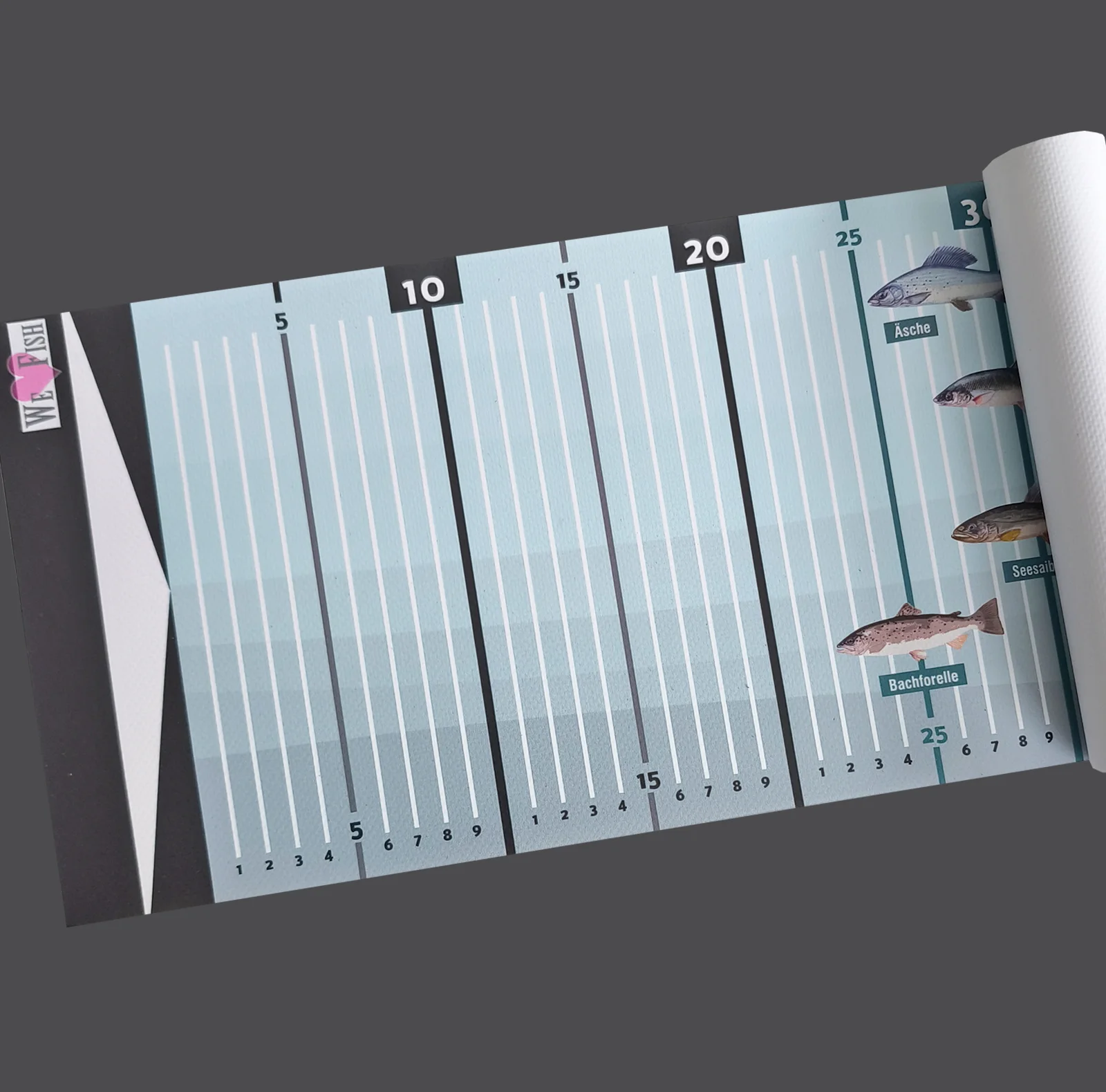 Fischlineal aus PVC Planenmaterial, robust und abwaschbar, kann eingerollt werden. Nachhaltig durch Wiederverwendbarkeit.