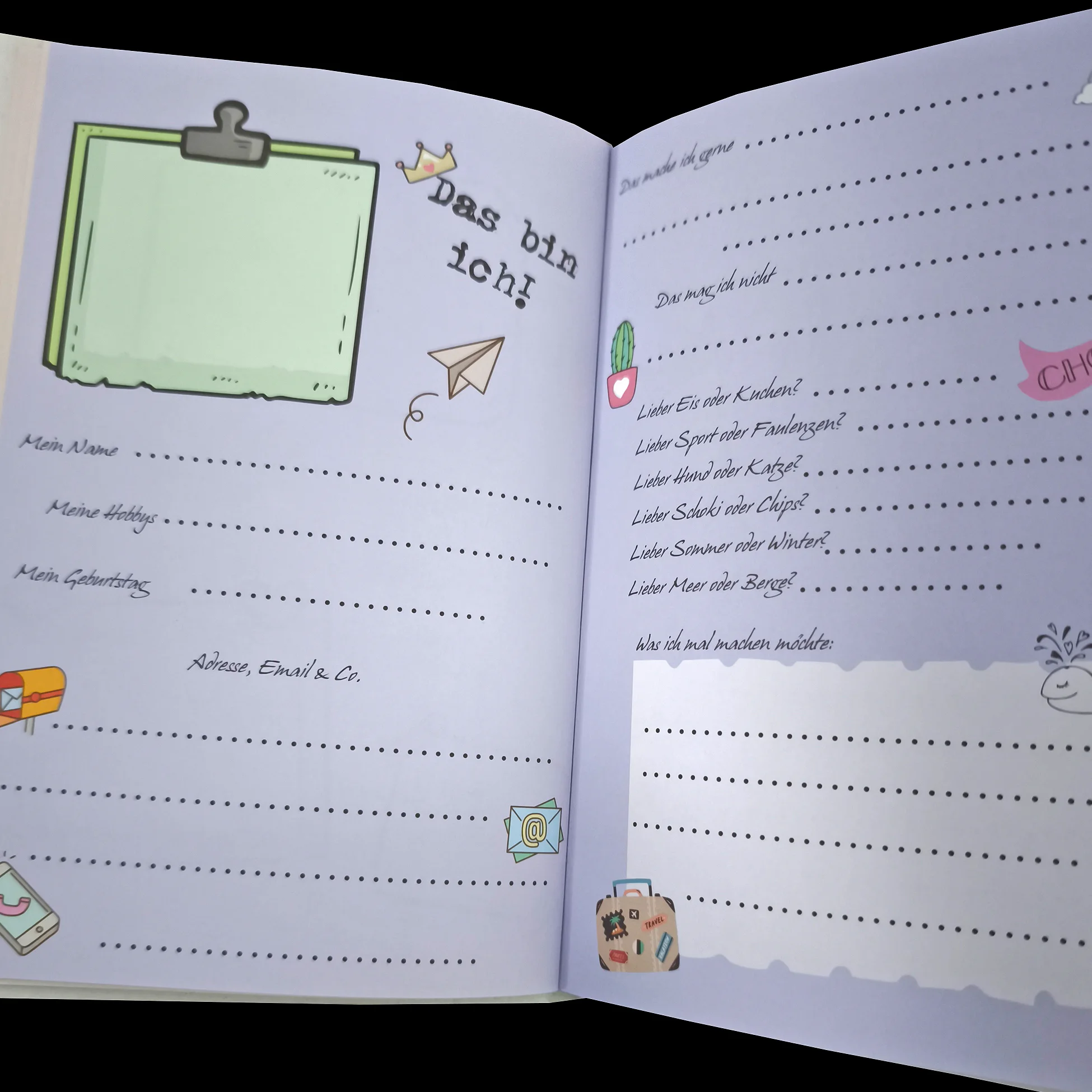 Lieblingsfilm, Hobbys, Berufswusch und Vieles mehr. In diesem Freundebuch aus Recycling Papier ist viel Platz für Klassenkameraden und Schulfreunde. Jedes Kind kann zwei Doppelseiten gestalten. Die Doppelseiten sind farblich unterschiedlich gestaltet. Das Freundebuch hat 60 Seiten inkl. Geburtstagskalender und Fotoseiten. Das Frontmotiv des Igels steht für Umwelt-, Tier- und Naturschutz - ergänzend zum umweltfreundlichen Papier der Seiten und des Umschlages.