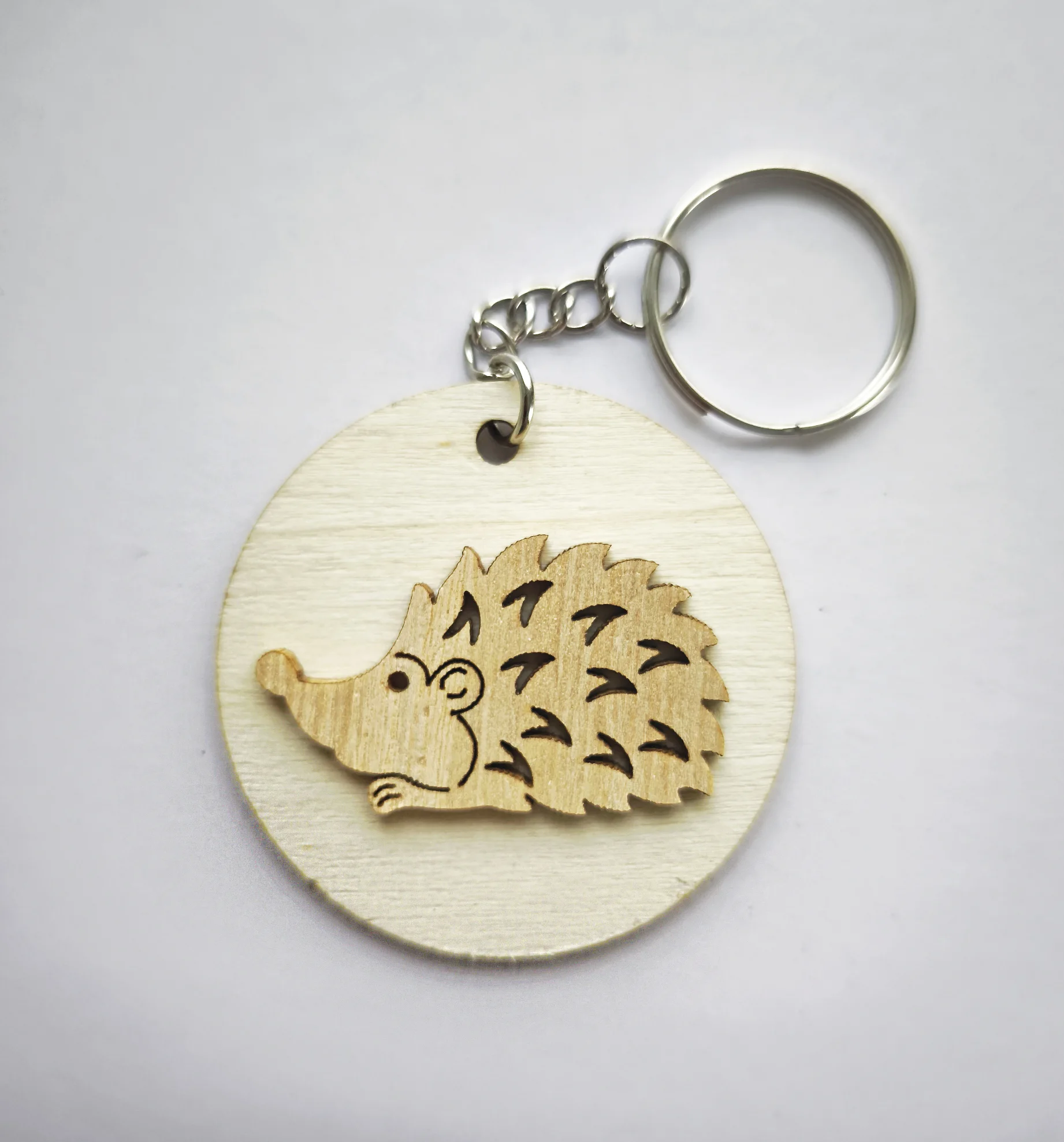 aus Holz, mit Schlüsselring aus Metall, Motiv IgelSchlüsselring: 2,5 cmIgelmotiv; 5 cmwertige QualitätNaturmaterial Holz